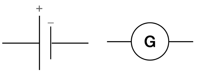 Il existe différents dispositifs qui permettent de donner de l’énergie aux charges électriques. Ce sont les sources de tension (pile, dynamo, panneau photovoltaïque, générateur électrique etc.). Dans un circuit ils sont représentés par un des symboles suivants :