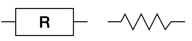 Il existe différents dispositifs qui utilisent l’énergie des charges électriques (plaque de cuisson, téléviseur, ampoule électrique, moteur électrique etc.). En opposant une résistance au passage des charges électriques, ces dispositifs utilisent une partie de leur énergie et la transforment en d’autres formes d’énergie (chaleur, lumière, mouvement etc.). On les appelle de manière générale des résistances électriques. Dans un circuit une résistance est représentée par un des symboles suivants :